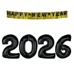Balony Foliowe 2026 Na Nowy Rok Sylwestra 85 cm + Girlanda Happy New Year