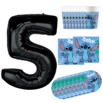 Kubeczki 8x + Talerzyki 8x + Serwetki 20x Stitch + Balon Cyfra 5 92 cm