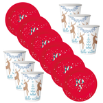 Kubeczki 250 ml + Talerzyki Zastawa Stołowa Jednorazowa Na Święta Renifer