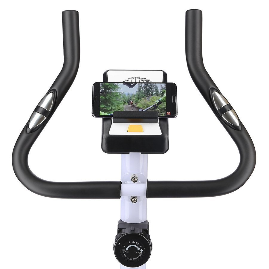 Rower posiada 8-stopniową regulację oporu, dzięki której możesz dopasować intensywność treningu do swojego poziomu zaawansowania – od lekkiego rozgrzewkowego pedałowania po wymagające treningi kondycyjne. Wbudowany komputer treningowy na bieżąco monitoruje kluczowe parametry, takie jak czas, prędkość, dystans i spalone kalorie. Dodatkowo, ergonomiczne regulowane siodełko i antypoślizgowe pedały z regulowanymi paskami zapewniają stabilność i komfort nawet podczas dłuższych sesji. Praktyczny uchwyt na urządzenie mobilne pozwoli Ci oglądać ulubione filmy lub słuchać muzyki w trakcie treningu.