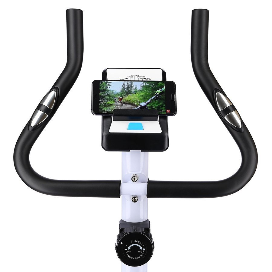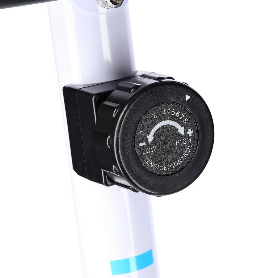 Rower oferuje 8-stopniową regulację oporu, co umożliwia dopasowanie intensywności ćwiczeń do indywidualnych potrzeb. Regulacja odbywa się w prosty sposób – za pomocą ergonomicznego pokrętła umieszczonego na kolumnie kierownicy. Funkcjonalny komputer treningowy prezentuje najważniejsze dane, takie jak czas, prędkość, dystans czy liczba spalonych kalorii. Z kolei regulowane siodełko i pedały z paskami gwarantują komfort oraz bezpieczeństwo podczas treningu. Dodatkowym udogodnieniem jest uchwyt na urządzenie mobilne, dzięki któremu możesz słuchać muzyki lub oglądać ulubione filmy podczas ćwiczeń.