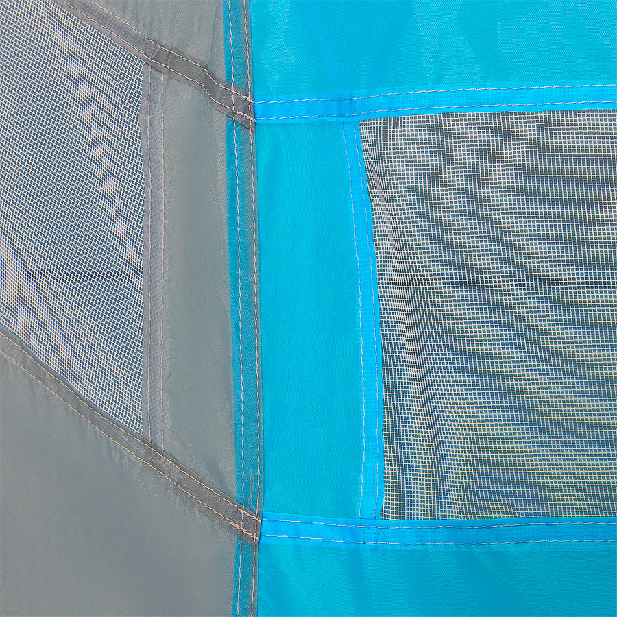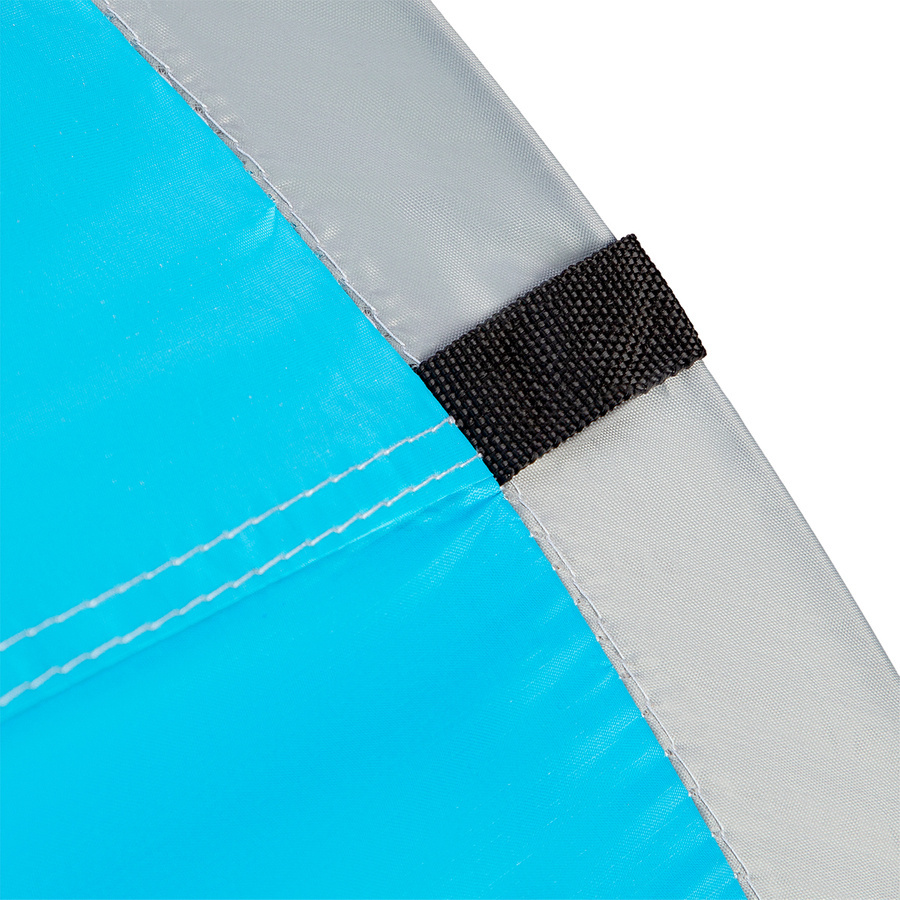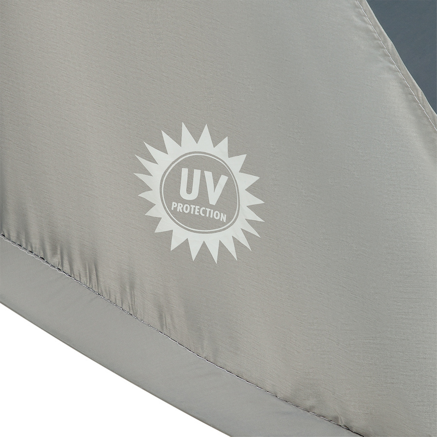 Stabilność namiotu zapewniają śledzie dołączone do zestawu oraz specjalne kieszenie, które można wypełnić piaskiem – skutecznie zapobiegają przesuwaniu się namiotu lub porwaniu go przez wiatr.