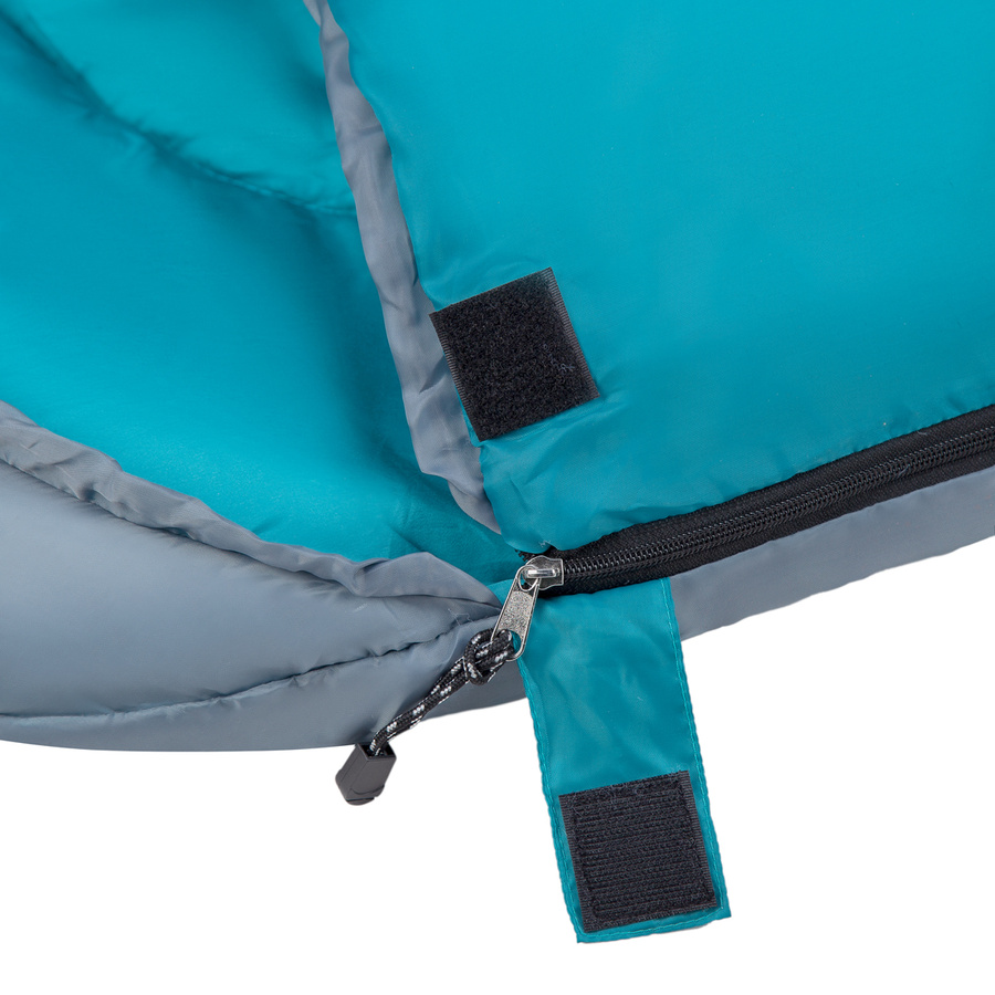 Śpiwór wyposażony jest w zamek błyskawiczny zabezpieczony rzepem, który zapobiega jego przypadkowemu rozsuwaniu się. Po złożeniu bez problemu mieści się w dołączonym pokrowcu kompresyjnym z paskami regulującymi objętość. To idealne rozwiązanie dla każdego, kto ceni wygodę, trwałość i funkcjonalność podczas wypoczynku w terenie.