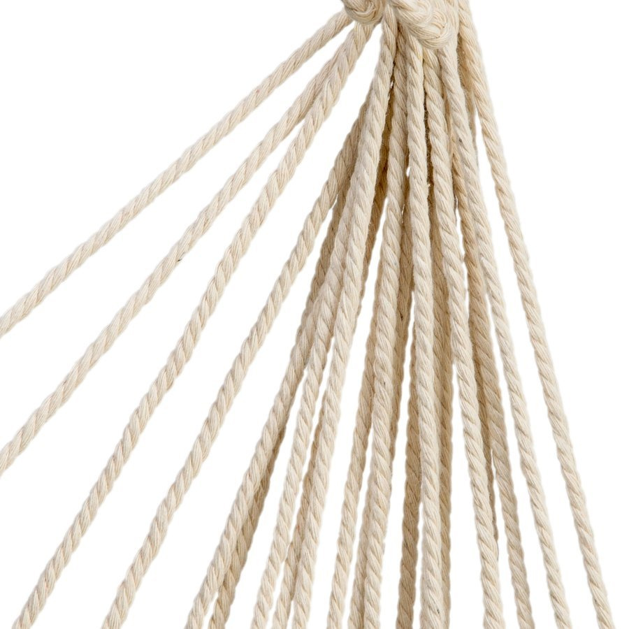 Krzesło zostało wykonane z oddychającego, przyjemnego w dotyku płótna, które jest odporne na przetarcia i warunki atmosferyczne. Solidny drewniany stelaż oraz grubo plecione liny gwarantują stabilność. Maksymalne obciążenie wynosi 100 kg. Dla jeszcze większej wygody w zestawie znajdują się dwie miękkie poduszki – idealne, by rozsiąść się w ulubionej pozycji i odpocząć.