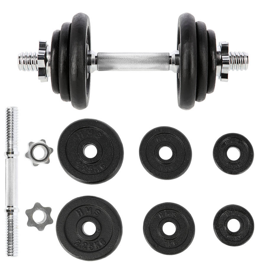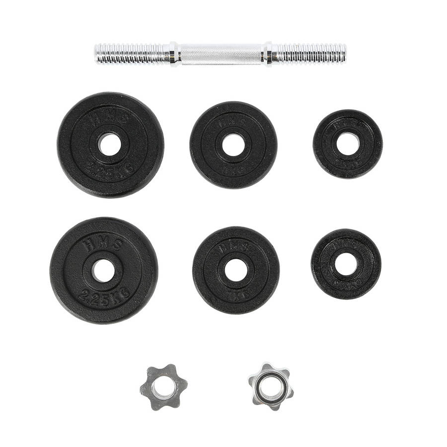 - W komplecie: gryf prosty 2 kg, 2 × 0,5 kg, 2 × 1 kg, 2 × 2,25 kg, 2 zaciski gwiazdowe 0,25 kg