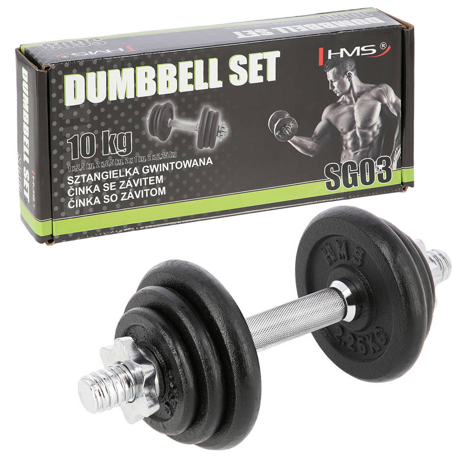 SG03 HMS to klasyczna hantla żeliwna, która sprawdzi się zarówno w domowej siłowni, jak i w profesjonalnym klubie fitness. Zestaw składa się z gryfu prostego, żeliwnych talerzy oraz zacisków gwiazdowych, co pozwala na swobodną regulację obciążenia w zależności od potrzeb. Gryf wykonany ze stali niklowanej z ryflowanym uchwytem zapewnia pewny i stabilny chwyt, a żeliwne talerze gwarantują trwałość i długą żywotność. Łączna waga kompletu wynosi 10 kg, co czyni go idealnym wyborem dla osób początkujących oraz średniozaawansowanych, chcących rozwijać siłę i poprawiać kondycję.