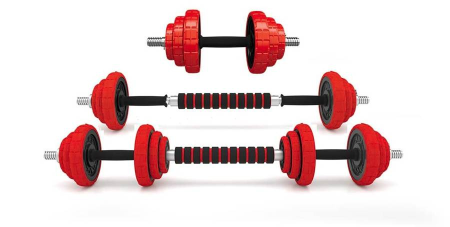 - Funkcja 2 w 1 – dwie sztangielki z możliwością połączenia w sztangę.