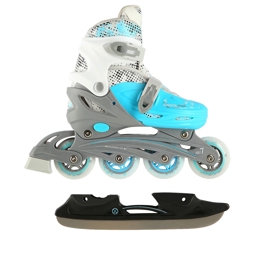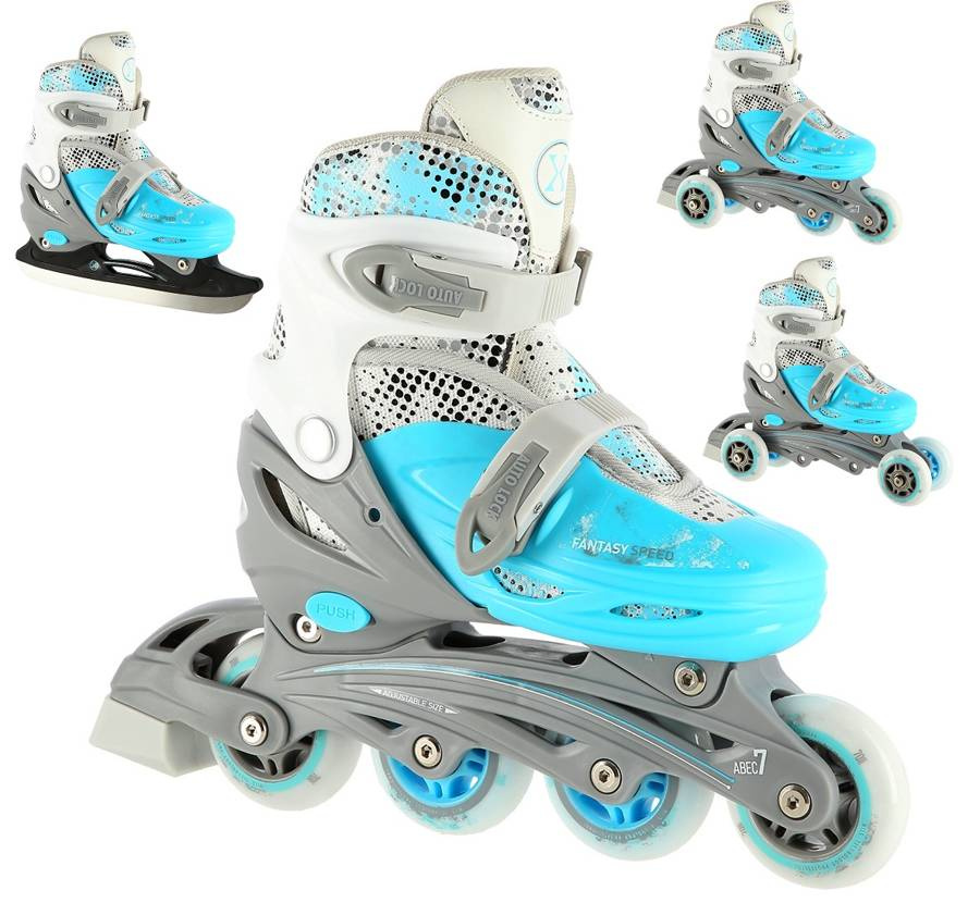 NH18331 Nils Extreme to wszechstronny zestaw 4w1, który łączy w sobie funkcję łyżew, łyżworolek, wrotek i rolko-wrotek. Idealny wybór dla osób, które chcą cieszyć się jazdą przez cały rok, zarówno na lodzie, jak i na asfalcie.