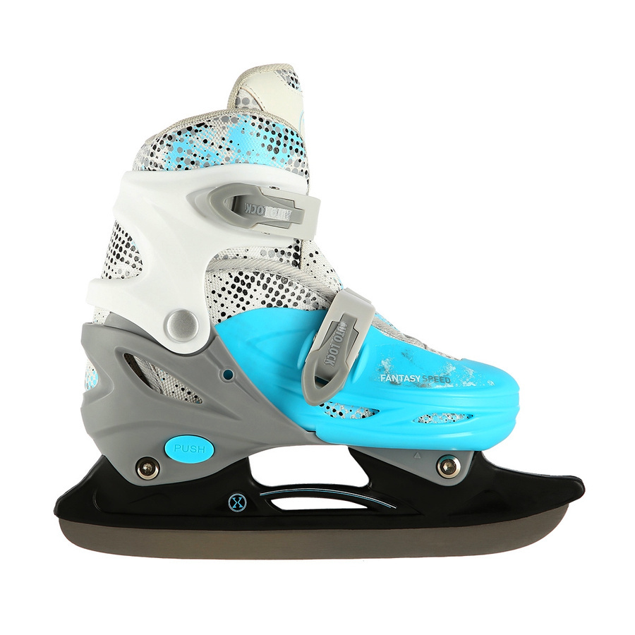 - Łyżwy hokejowe – płozy ze stali nierdzewnej zapewniają doskonałe właściwości jezdne,