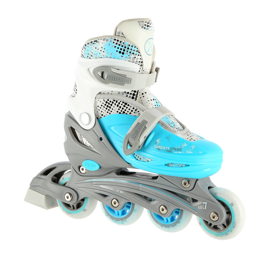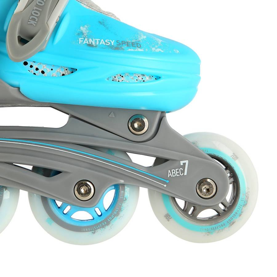 - Łyżworolki – plastikowa płoza z hamulcem, kółka i łożyska ABEC7 dla szybkiej i płynnej jazdy,