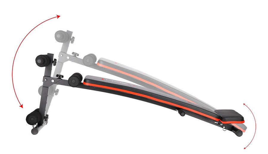 Podstawowym ćwiczeniem są skłony (brzuszki), ale ławka umożliwia także pompki w różnych wersjach oraz trening z gumami oporowymi.