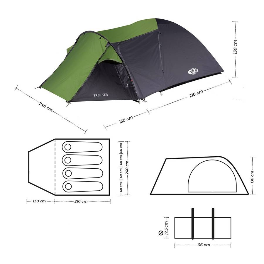 NC6012 Trekker to przestronny namiot turystyczny dla 4 osób, wyposażony w niezależną sypialnię i duży przedsionek. Świetnie sprawdzi się podczas weekendowych wypadów w góry, nad jezioro czy na camping.