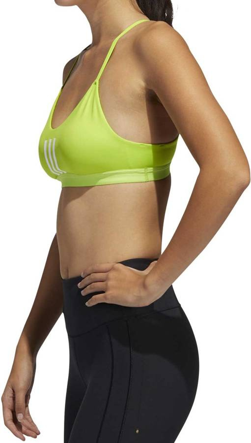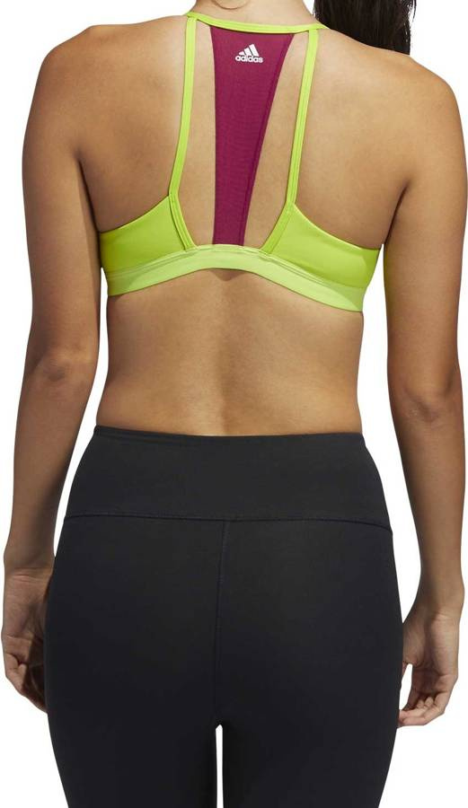 Lekko wspierający biustonosz sportowy zaprojektowany z myślą o swobodzie ruchów i komforcie podczas ćwiczeń. Świetnie sprawdzi się na jogę, pilates, stretching czy inne spokojniejsze aktywności, gdzie liczy się elastyczność i naturalne dopasowanie. Oddychający dół, tylny panel z siateczki oraz materiał z technologią AEROREADY skutecznie odprowadzają wilgoć, utrzymując uczucie suchości i świeżości. Kobiecy dekolt w kształcie litery V i cienkie ramiączka sprawiają, że biustonosz jest nie tylko funkcjonalny, ale też stylowy.