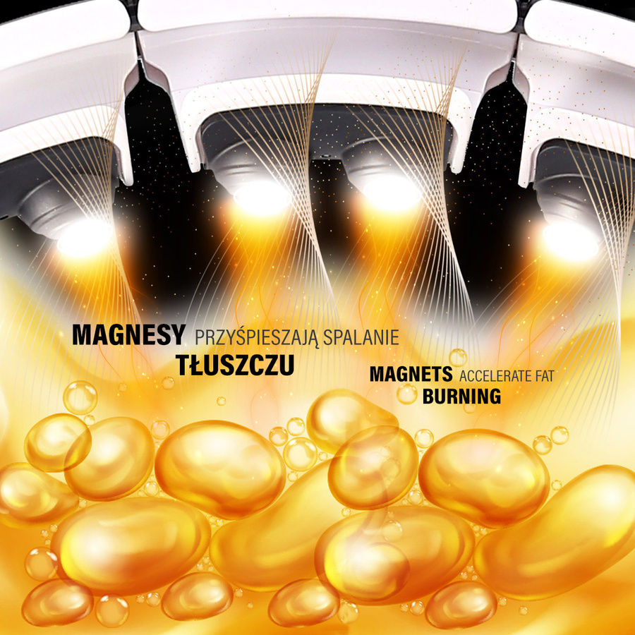 - Magnetyczny masaż 360°: 32 magnesy o ujemnej polaryzacji stymulują metabolizm i wspomagają spalanie tkanki tłuszczowej.