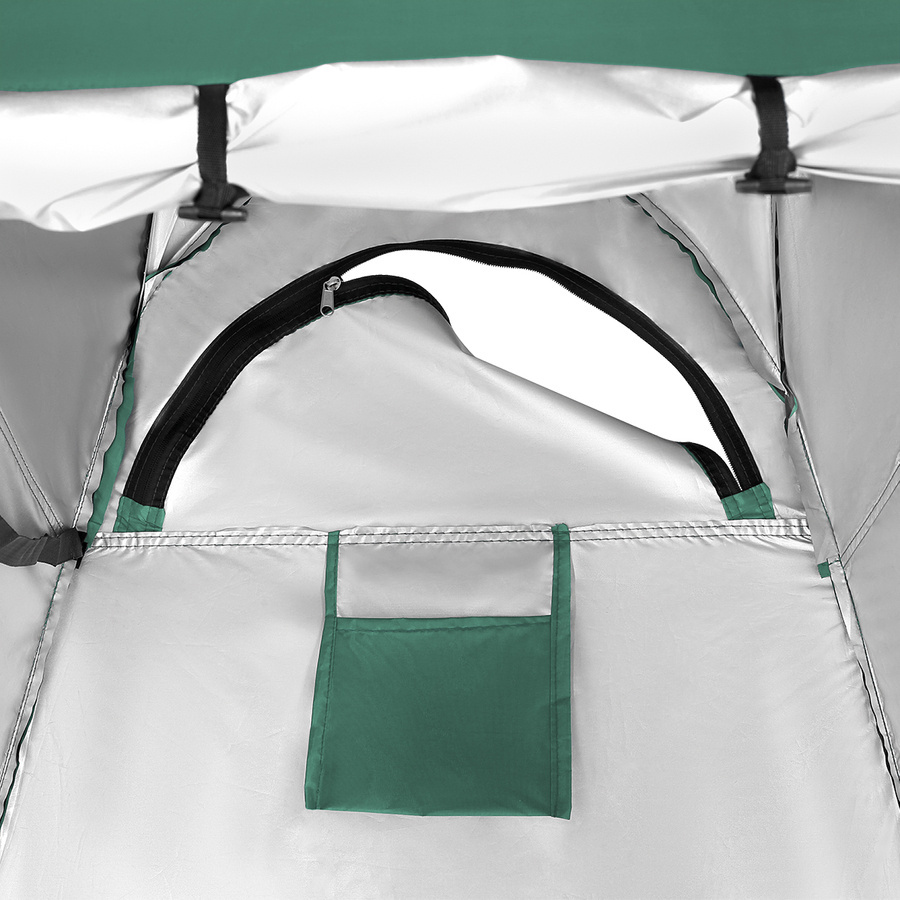 • Nieprześwitująca tkanina, boczne okno i sufitowy otwór na prysznic