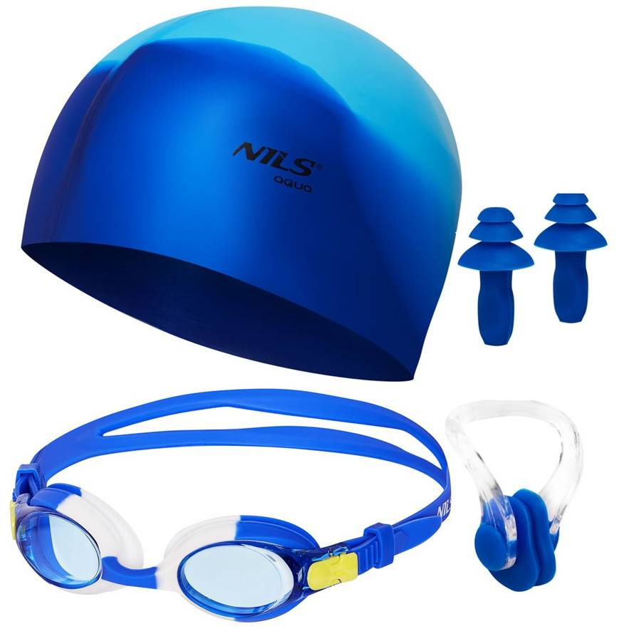 Zestaw Pływacki Na Basen Czepek + Okulary + Zatyczki Na Nos i Uszy NILS