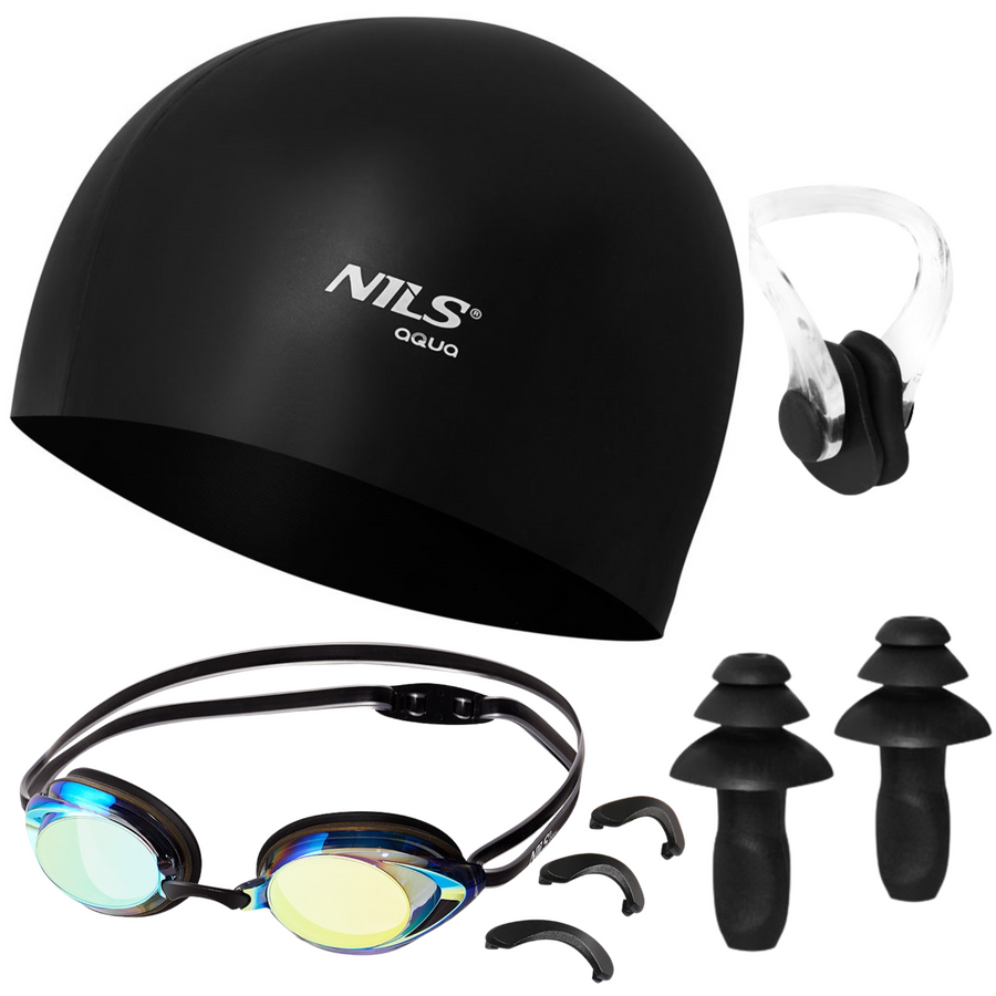 Zestaw Pływacki Na Basen Regulowane Okularki + Czepek + Zatyczki NILS