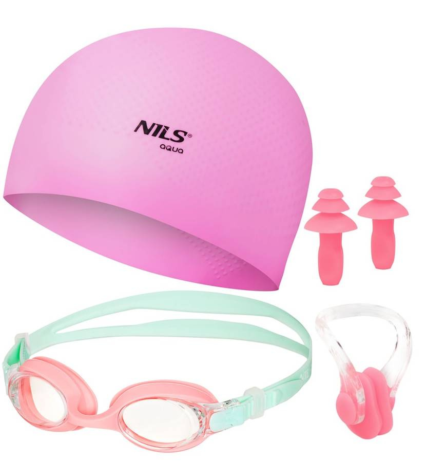 Zestaw Pływacki Na Basen Okularki + Czepek + Zatyczki Na Uszy I Nos NILS