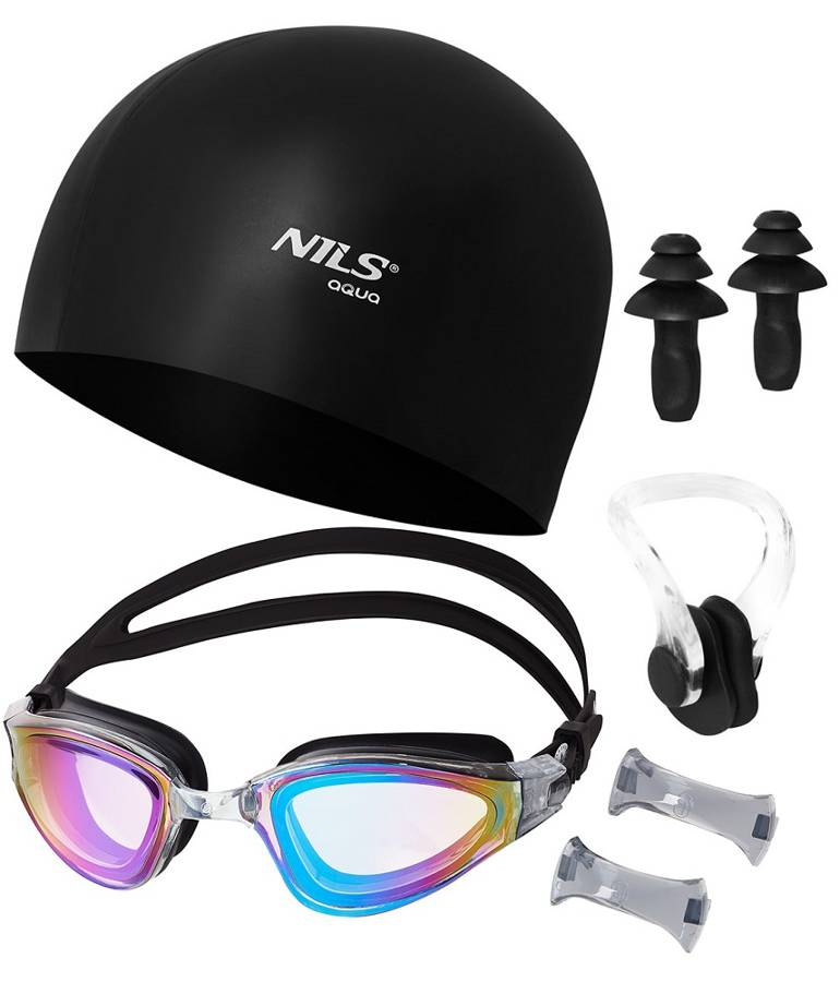 Zestaw Pływacki 3w1 Regulowane Okularki + Czepek + Zatyczki Na Nos I Uszy NILS