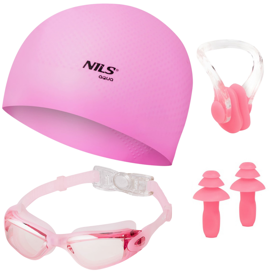 Zestaw 3w1 Pływacki Okularki + Czepek + Zatyczki Na Nos I Uszy NILS