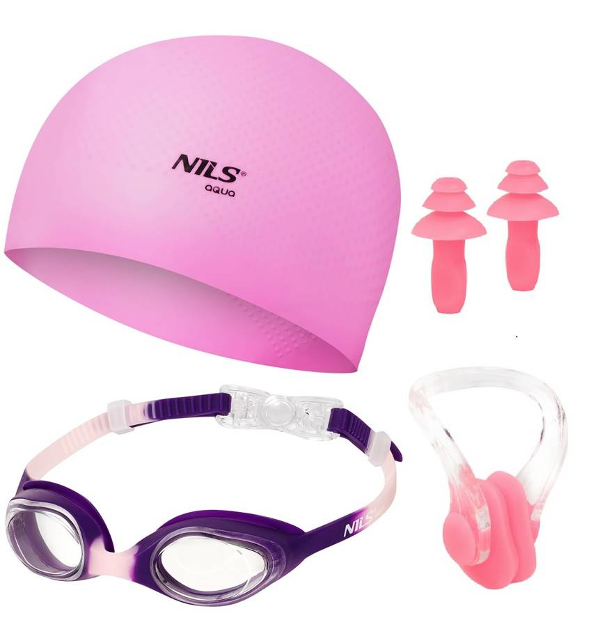 Zestaw Pływacki 3w1 Do Wody Okularki + Czepek + Zatyczki NILS