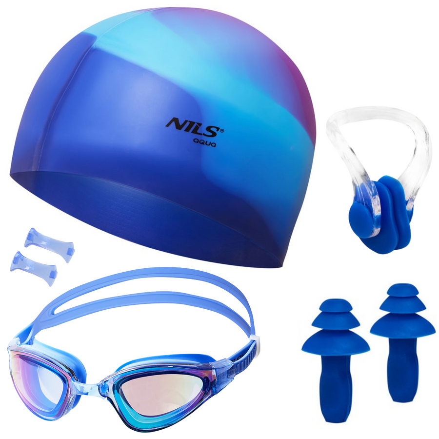 Zestaw Pływacki 3w1 Regulowane Okularki + Czepek + Zatyczki NILS AQUA