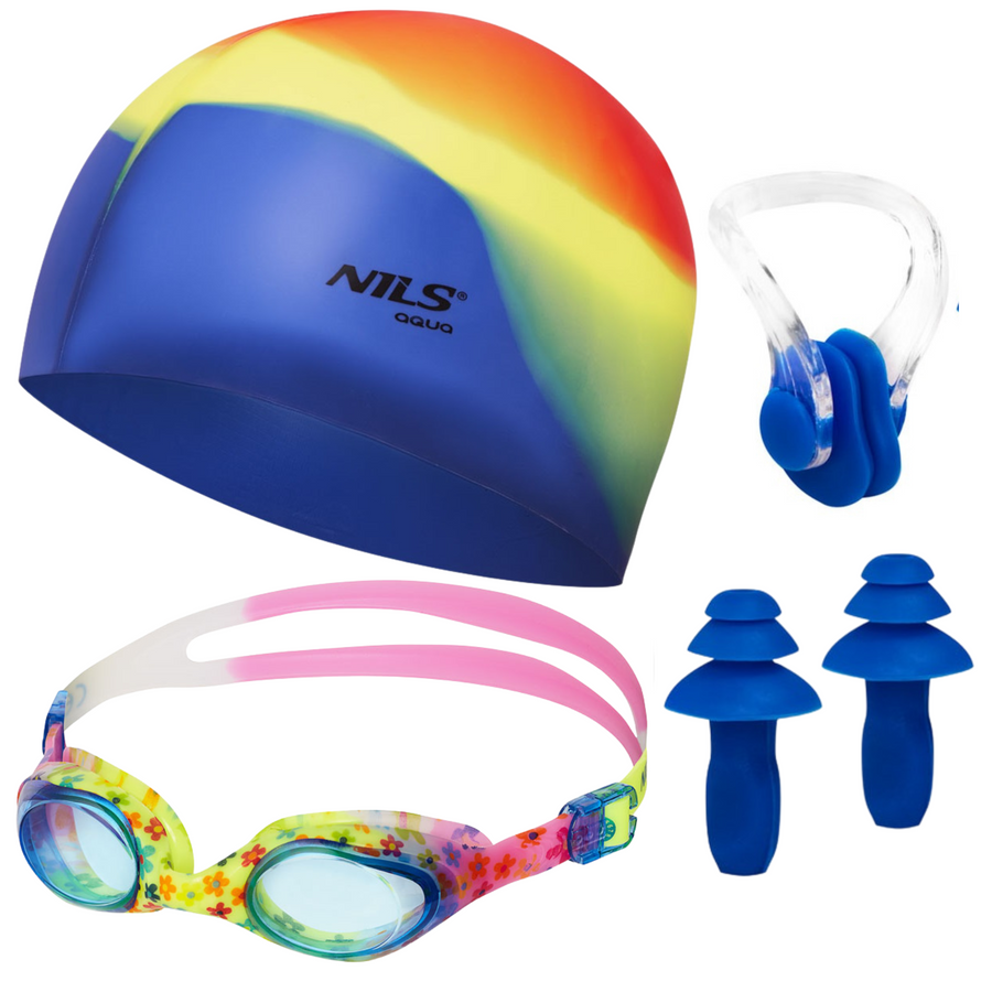 NILS Dziewczęcy Zestaw Pływacki 3w1 Okularki + Czepek + Zatyczki