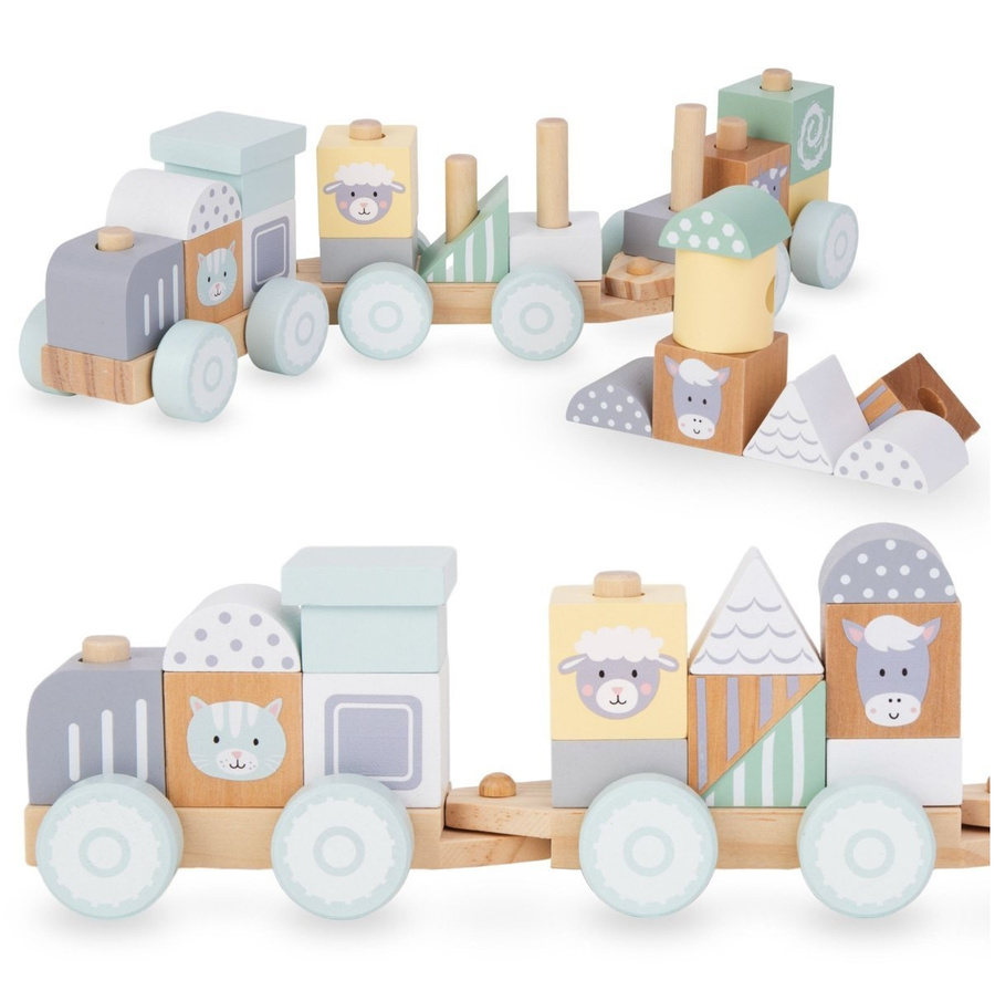 Drewniany pociąg z klockami – Farma MAMABRUM MAM89 FARM TRAIN
