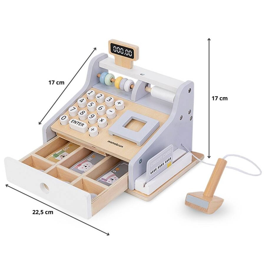 Kasa Fiskalna Drewniana  Sklepowa + Akcesoria Zabawka Edukacyjna Dla Dzieci
