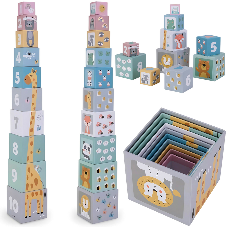 Wieża do układania dla dzieci – 10 elementów z cyframi i zwierzętami