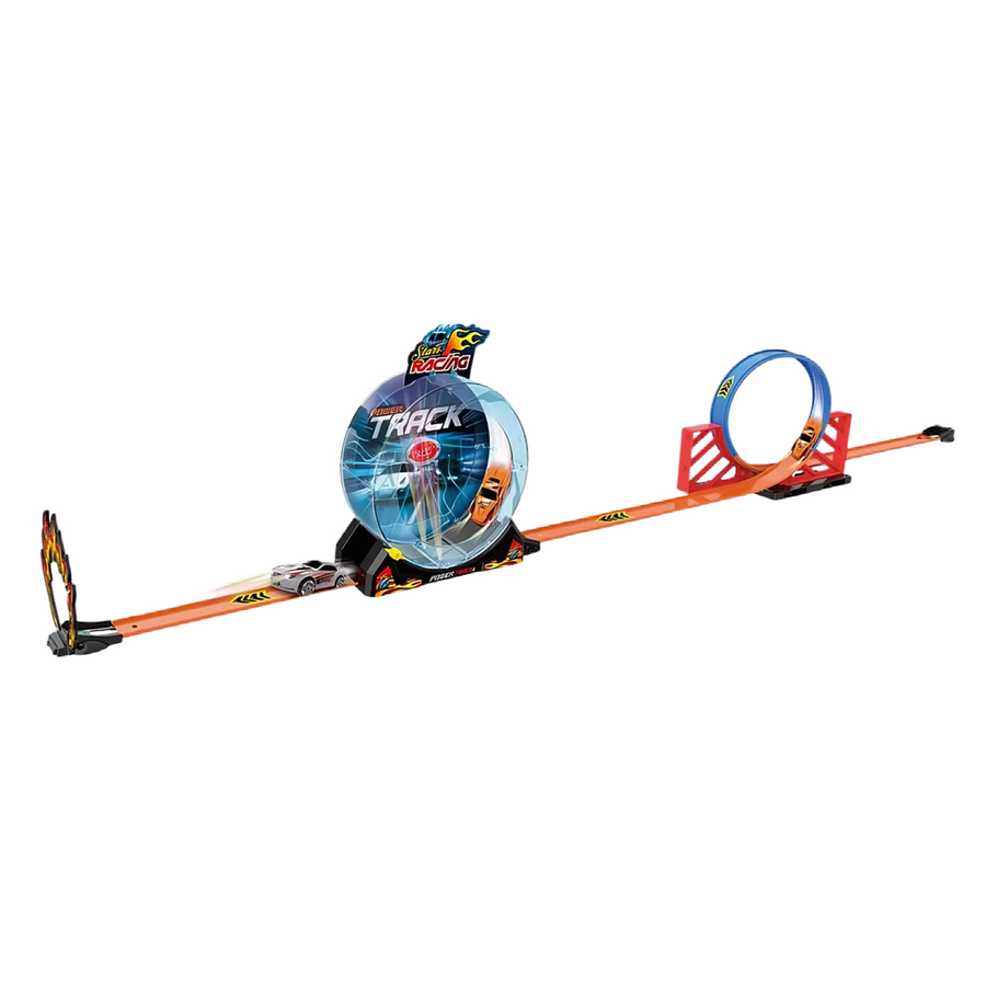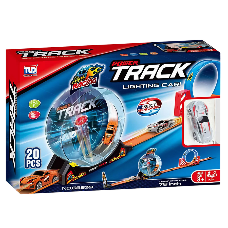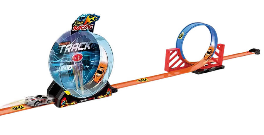 - Kompletny zestaw – 20 elementów toru i samochód wyścigowy z napędem,