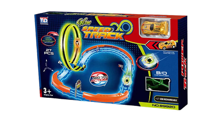 Model umożliwia zabawę samodzielną lub w gronie przyjaciół i rodziny. Rywalizacja, szybkie zwroty akcji i wyścigi pełne emocji gwarantują uśmiech na twarzy każdego malucha. A co najważniejsze – tor świeci w ciemności, co dodaje wyjątkowego klimatu podczas wieczornej zabawy!
