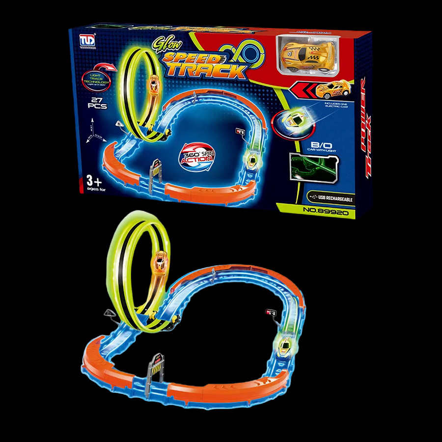 Tor Samochodowy Wyścigowy Świecący W Ciemności + Samochód