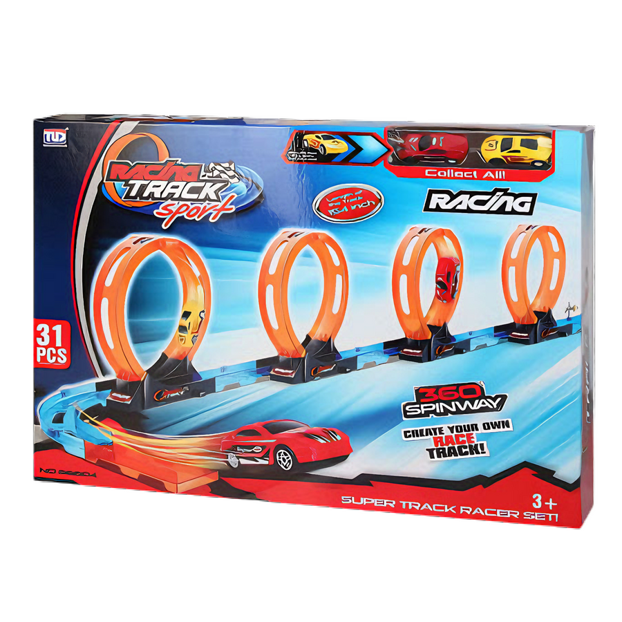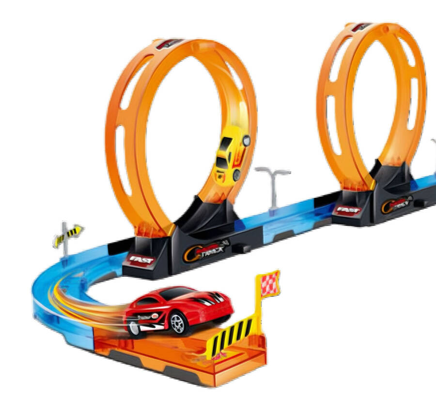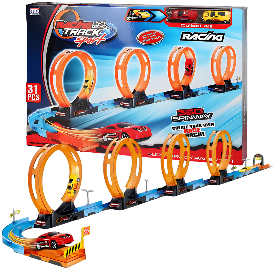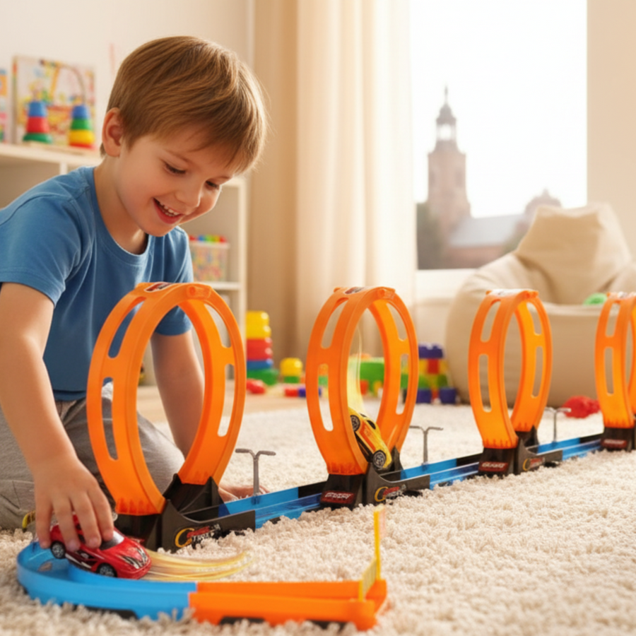 Tor Wyścigowy Samochodowy Pull Back Dla Dzieci 416 cm + 2 Samochody TLD