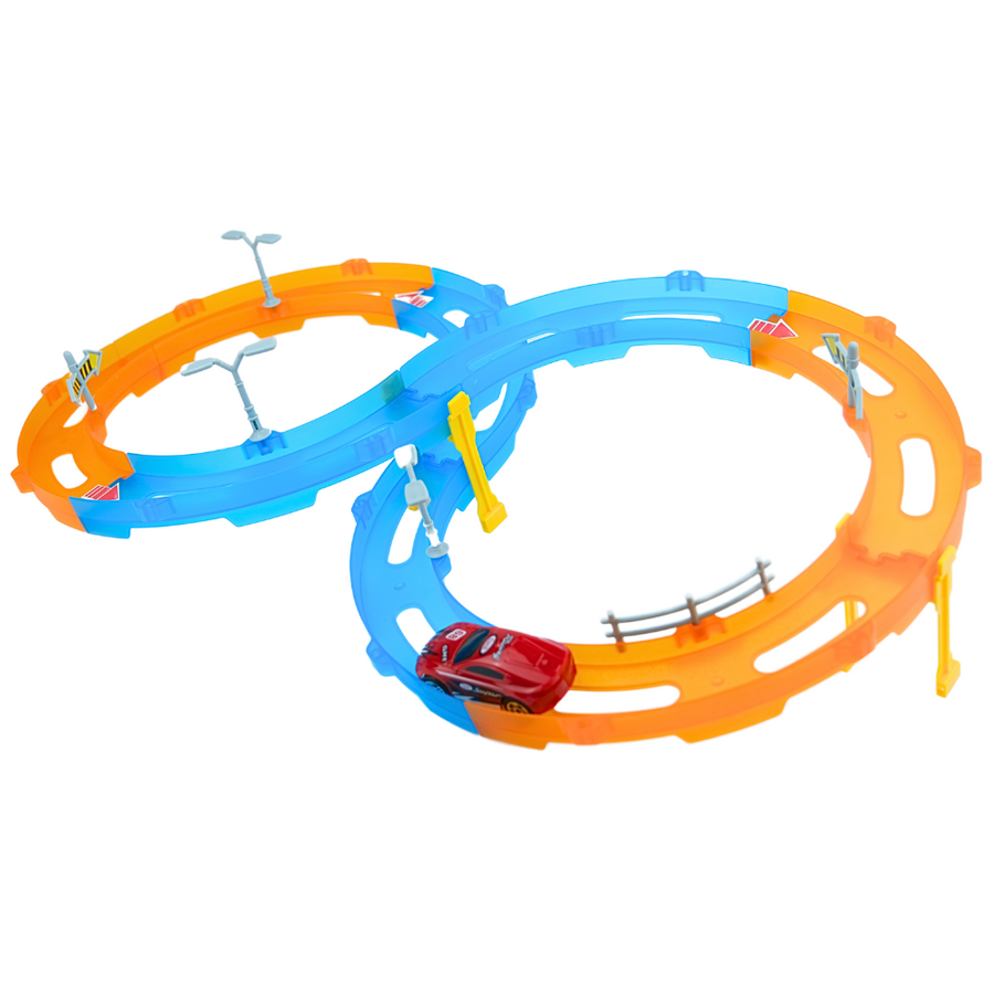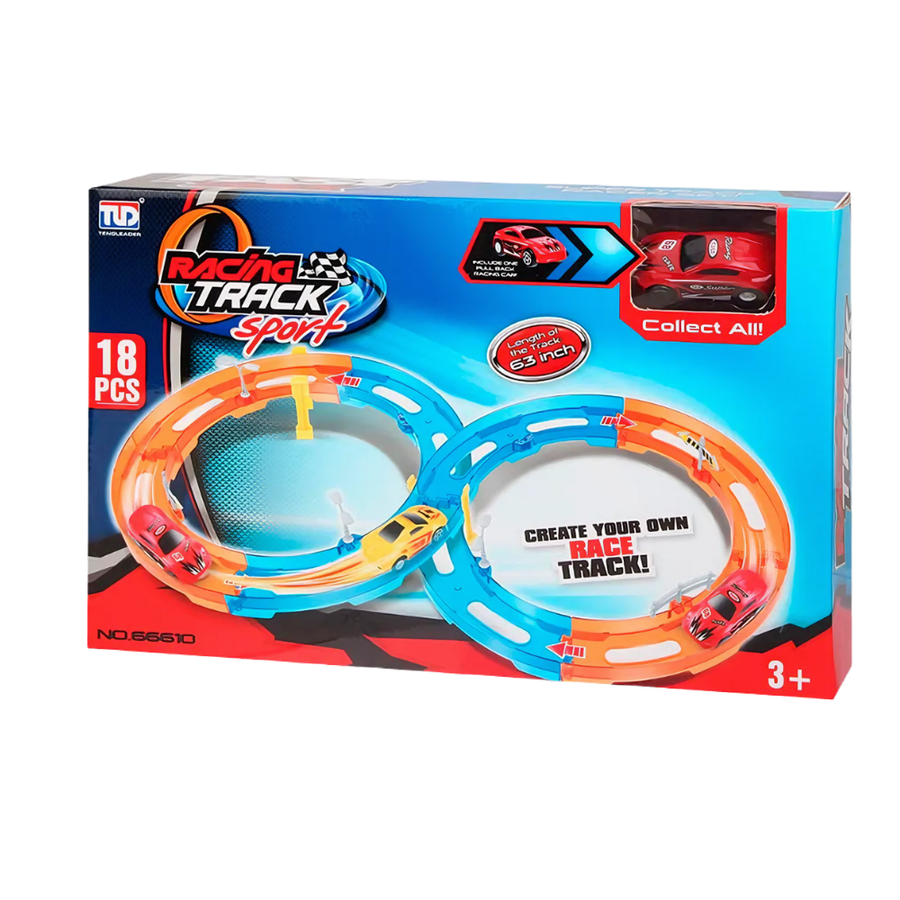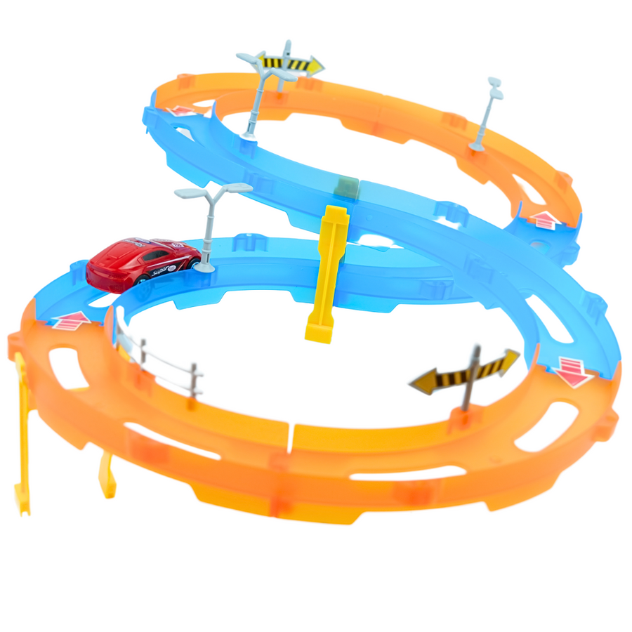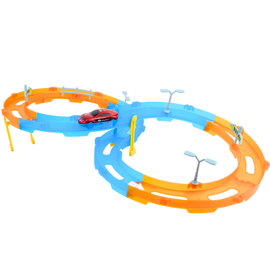Tor Wyścigowy Samochodowy Pull Back Dla Dzieci 160 cm + Samochód 18 el.