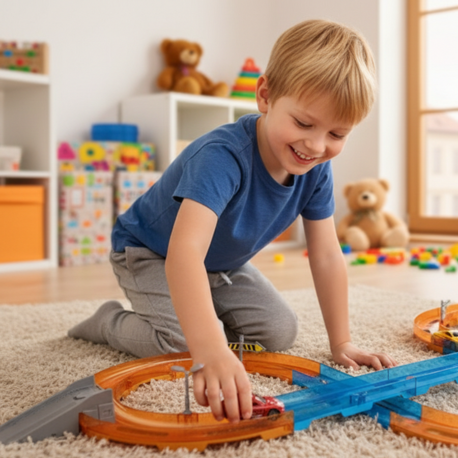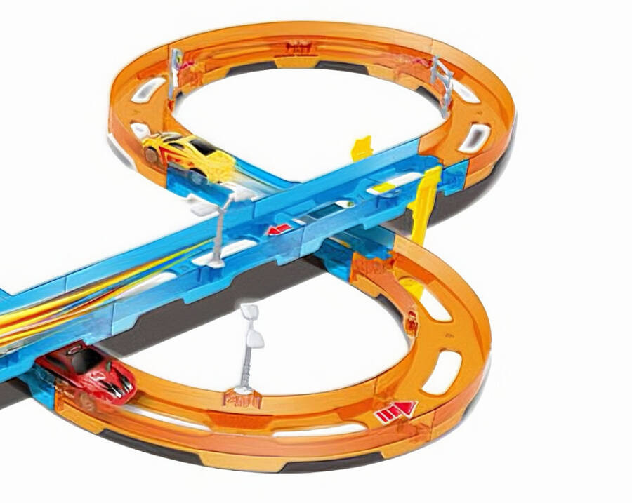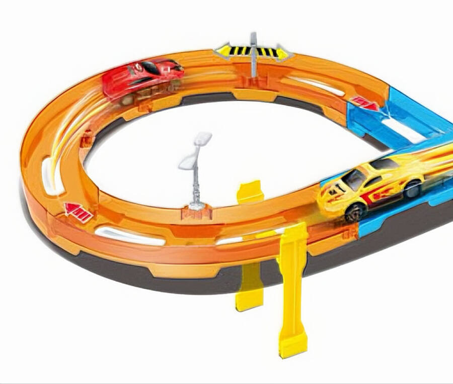 Tak, tor idealnie sprawdza się do rywalizacji – wystarczy dokupić dodatkowe pojazdy z napędem „pull back”.