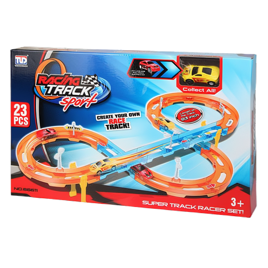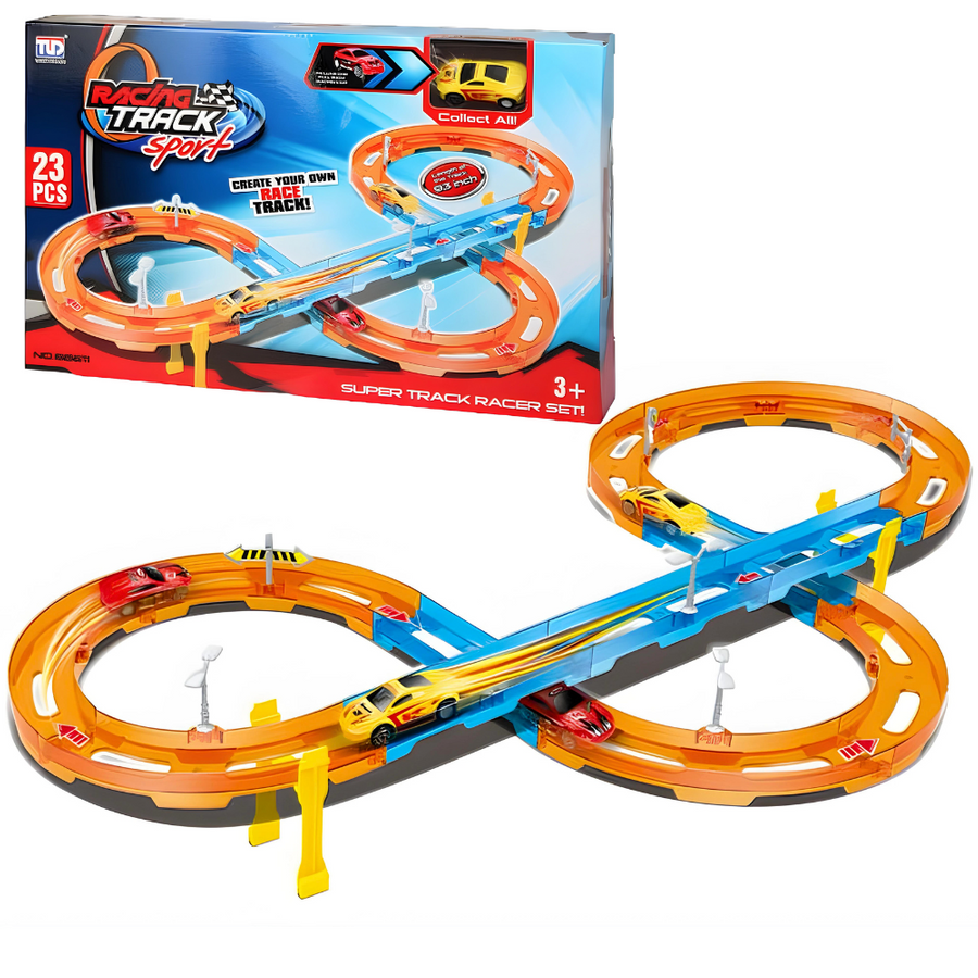 Tor Wyścigowy Samochodowy Pull Back Dla Dzieci 236 cm 23 el. + Samochód