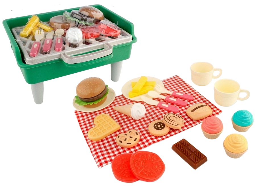 Mini Grill Zabawka Dla Dzieci 36 Elementów Sztućce + Akcesoria Spożywcze