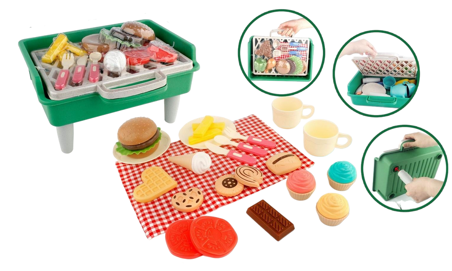 - 36 elementów – bogaty zestaw akcesoriów, który umożliwia realistyczną zabawę w grillowanie.