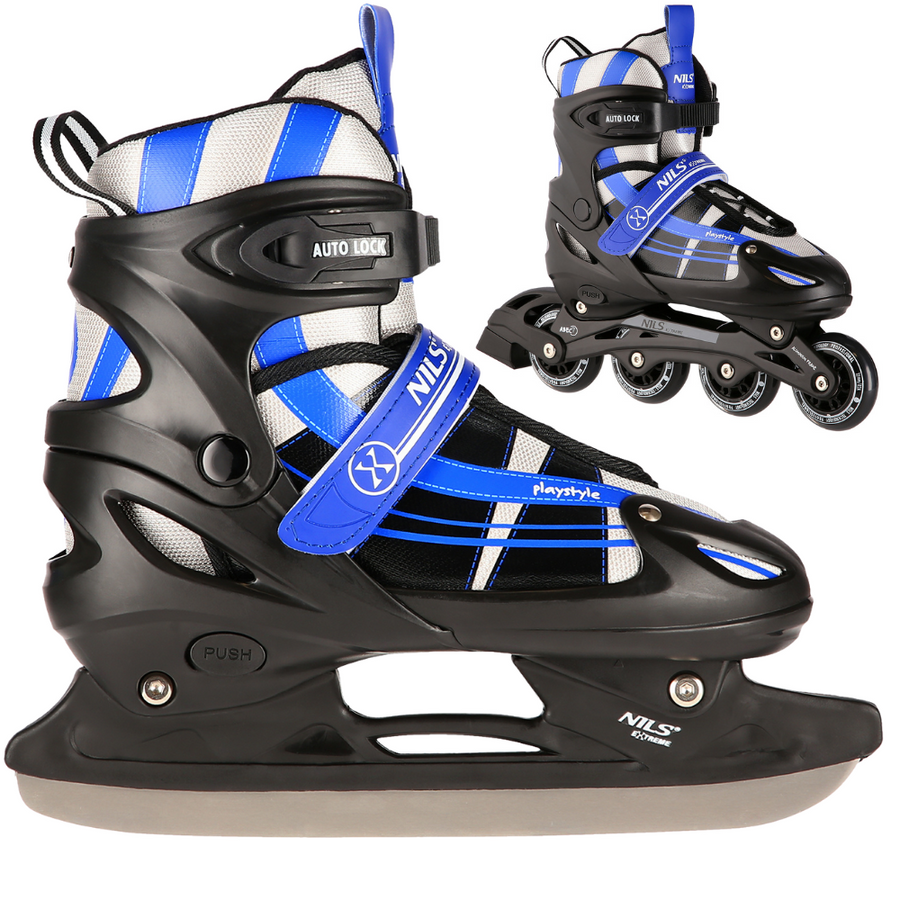 NH18366A Nils Extreme to funkcjonalny zestaw 2w1, który w zależności od pory roku i preferencji użytkownika może pełnić rolę łyżew hokejowych lub łyżworolek. To idealne rozwiązanie dla osób, które cenią sobie wszechstronność i komfort jazdy.