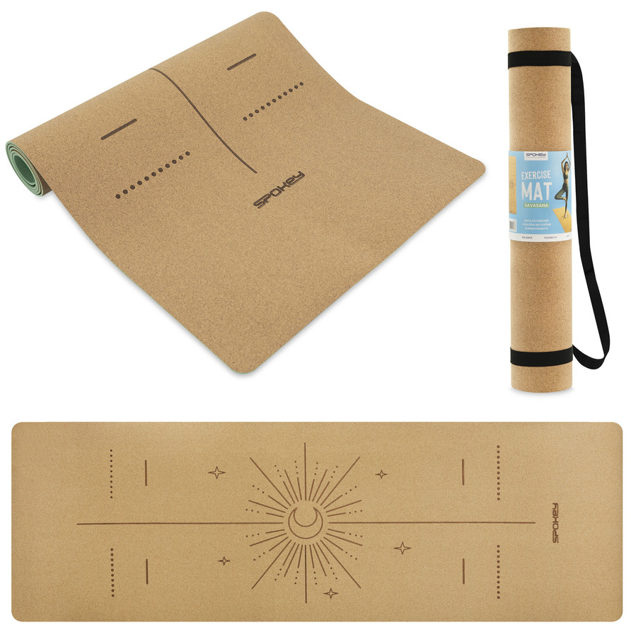 Mata Spokey SAVASANA została wykonana z naturalnego korka, który zapewnia wyjątkową przyczepność, komfort i higienę podczas każdej sesji jogi. Jej struktura nie chłonie wilgoci ani potu, dzięki czemu mata pozostaje świeża i łatwa do utrzymania w czystości. Grubość 0,4 cm gwarantuje doskonałą amortyzację, stabilność oraz bezpieczeństwo — zarówno dla początkujących, jak i zaawansowanych użytkowników.