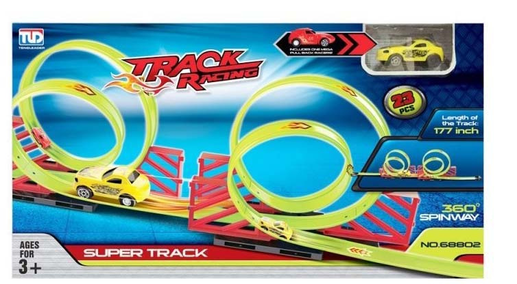 Zestaw składa się z 23 elementów toru oraz 1 samochodzika inercyjnego.