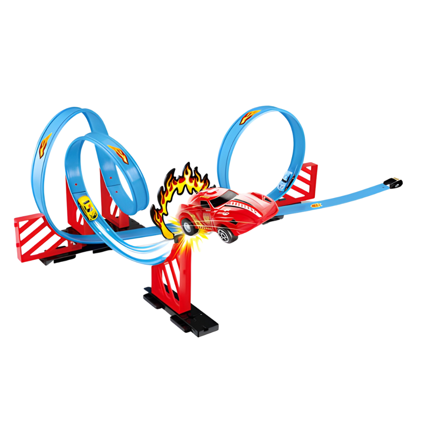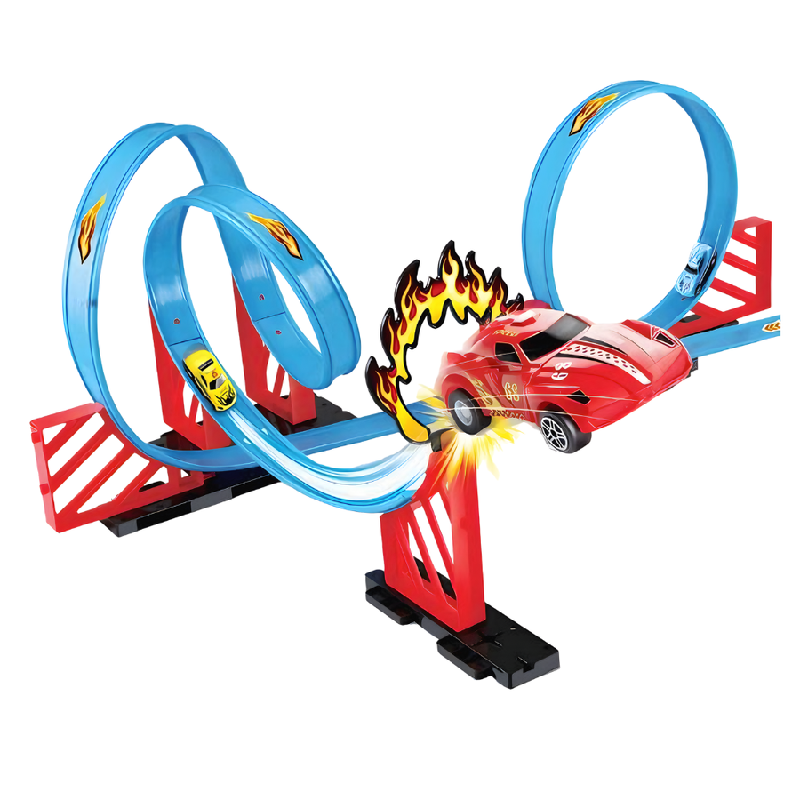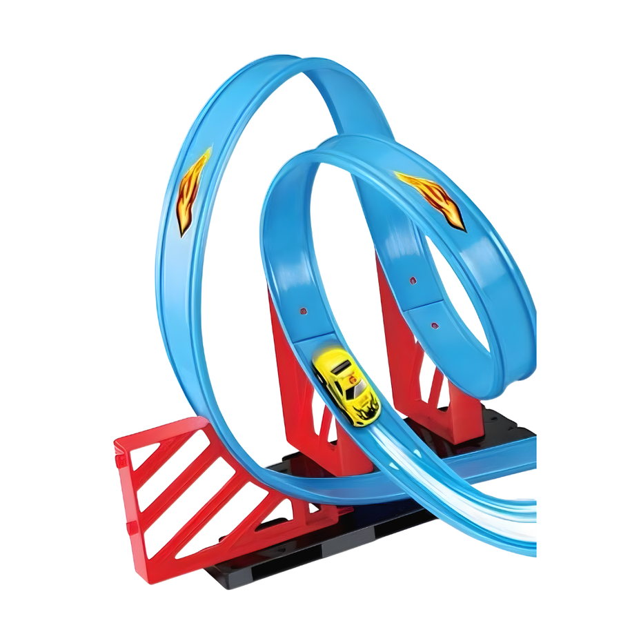 - Długość trasy 350 cm – tor z pętlami zapewnia dynamiczną jazdę i efektowne przejazdy.
