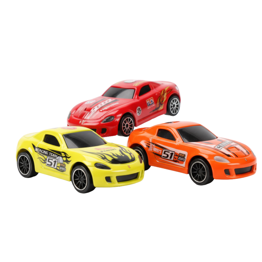 - Auto inercyjne w zestawie – gotowe do ścigania od razu po złożeniu toru.