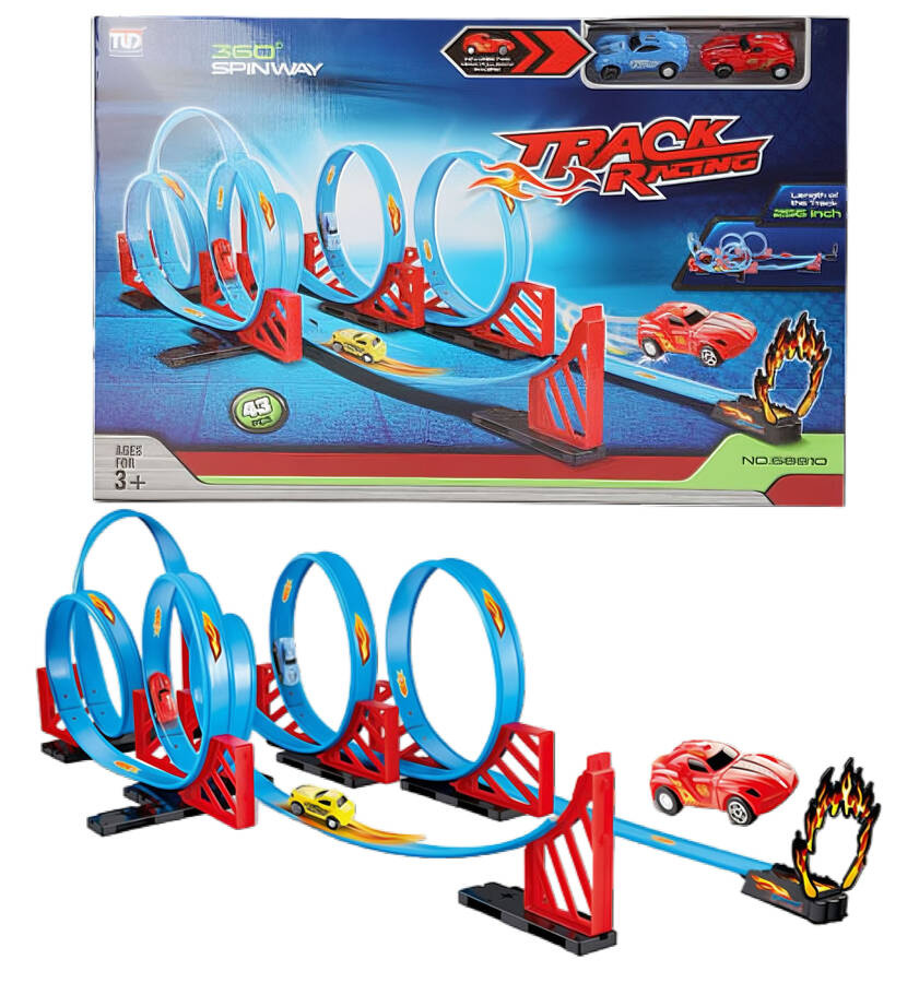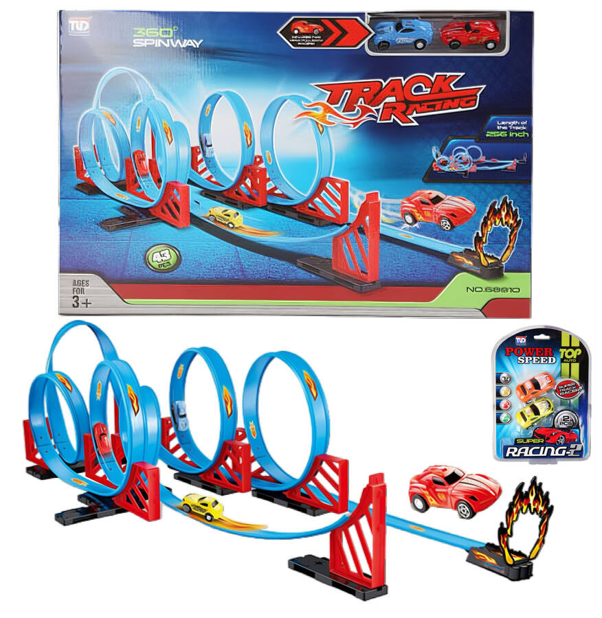 Tor Wyścigowy Samochodowy Pull Back Dla Dzieci 650 cm + 2 Samochody