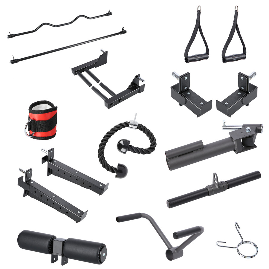 - Bogaty zestaw akcesoriów – uchwyty, drążki, dipy, jammer arms, monolift