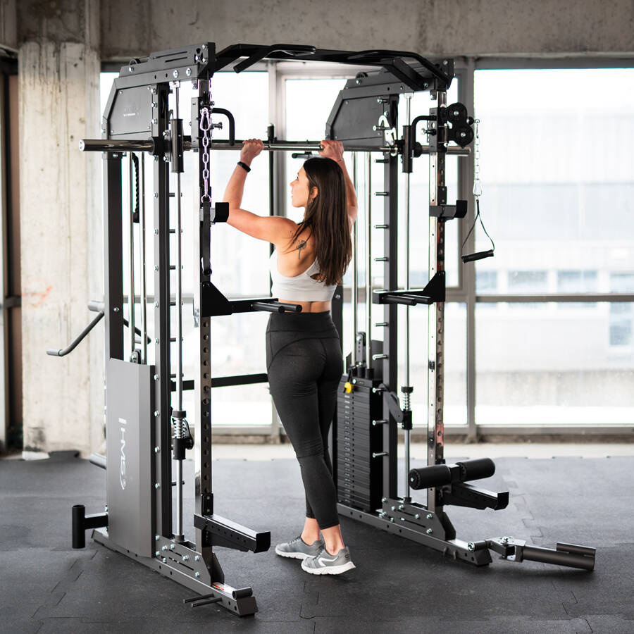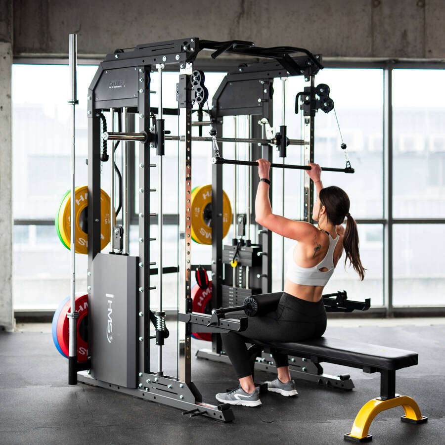 - Połączenie suwnicy Smitha i atlasu – trening całego ciała w jednym urządzeniu