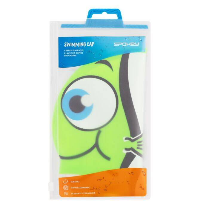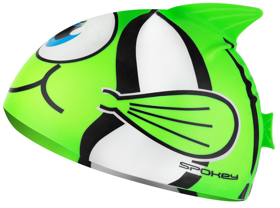 • Czepek Spokey MARLIN: wykonany z grubego silikonu, wyglądającego jak kolorowa rybka z płetwą i ogonkiem, łatwy do zakładania i trwały.
