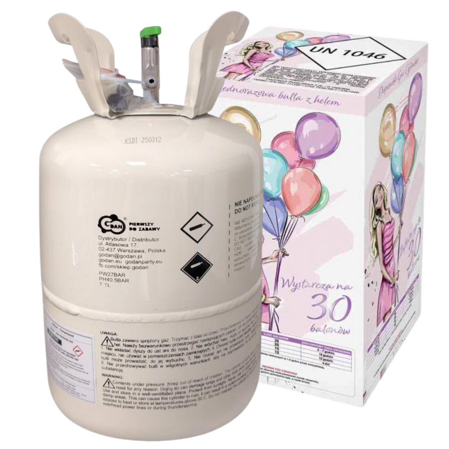 Jednorazowa Butla Z Helem Do 30 Balonów Lateksowych 9" Na Imprezę Urodziny
