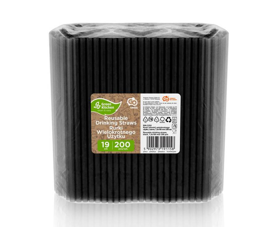 Słomki Plastikowe Rurki Wielokrotnego Użytku 19 cm GODAN Czarne 200 szt.